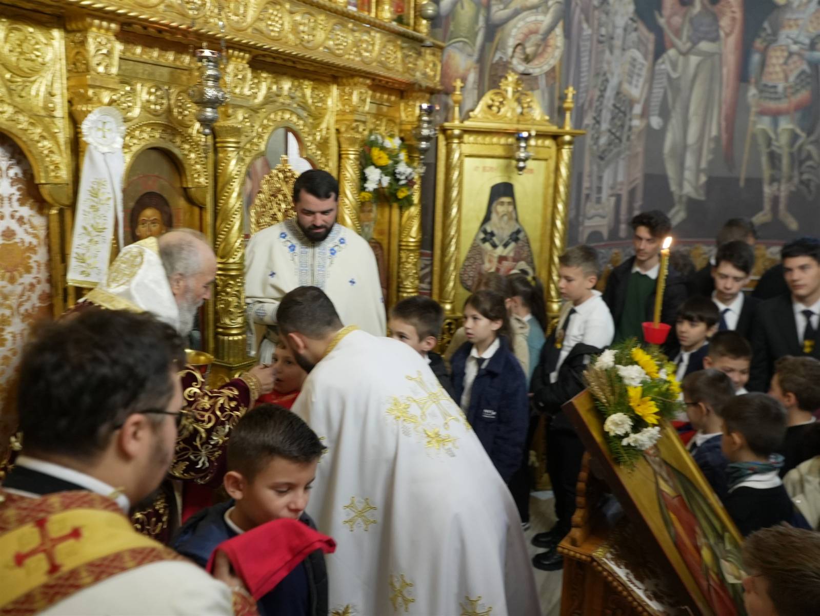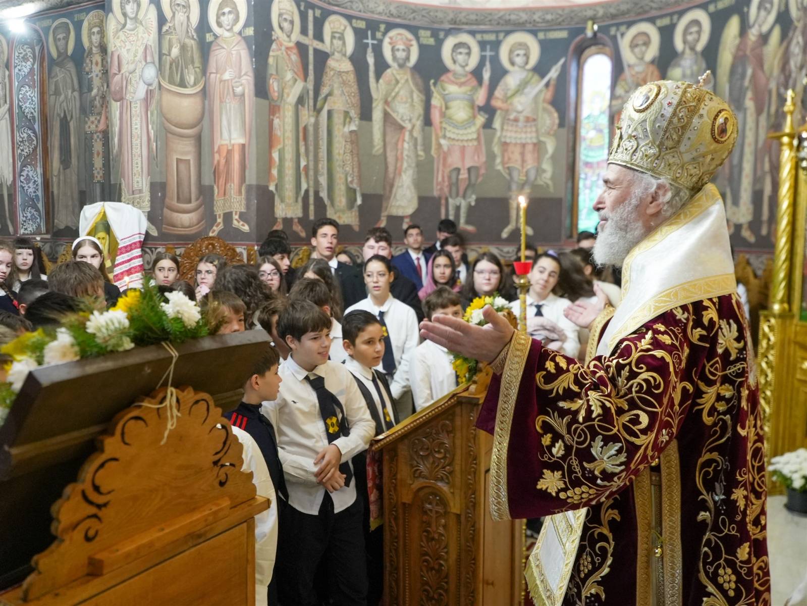 Foarte mulţi elevi au fost împărtăşiţi cu Sfintele Taine şi au primit daruri din partea ierarhului.