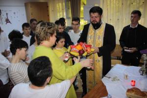 De la primele ore ale dimineţii, preotul paroh i-a împărtăşit cu Sfintele Taine şi i-a uns cu undelemn sfinţit de la Taina Sfântului Maslu pe bolnavii internaţi în acest centru social şi, împreună cu câţiva voluntari, le-a oferit acestora pachete cu produse de igienă şi articole vestimentare.