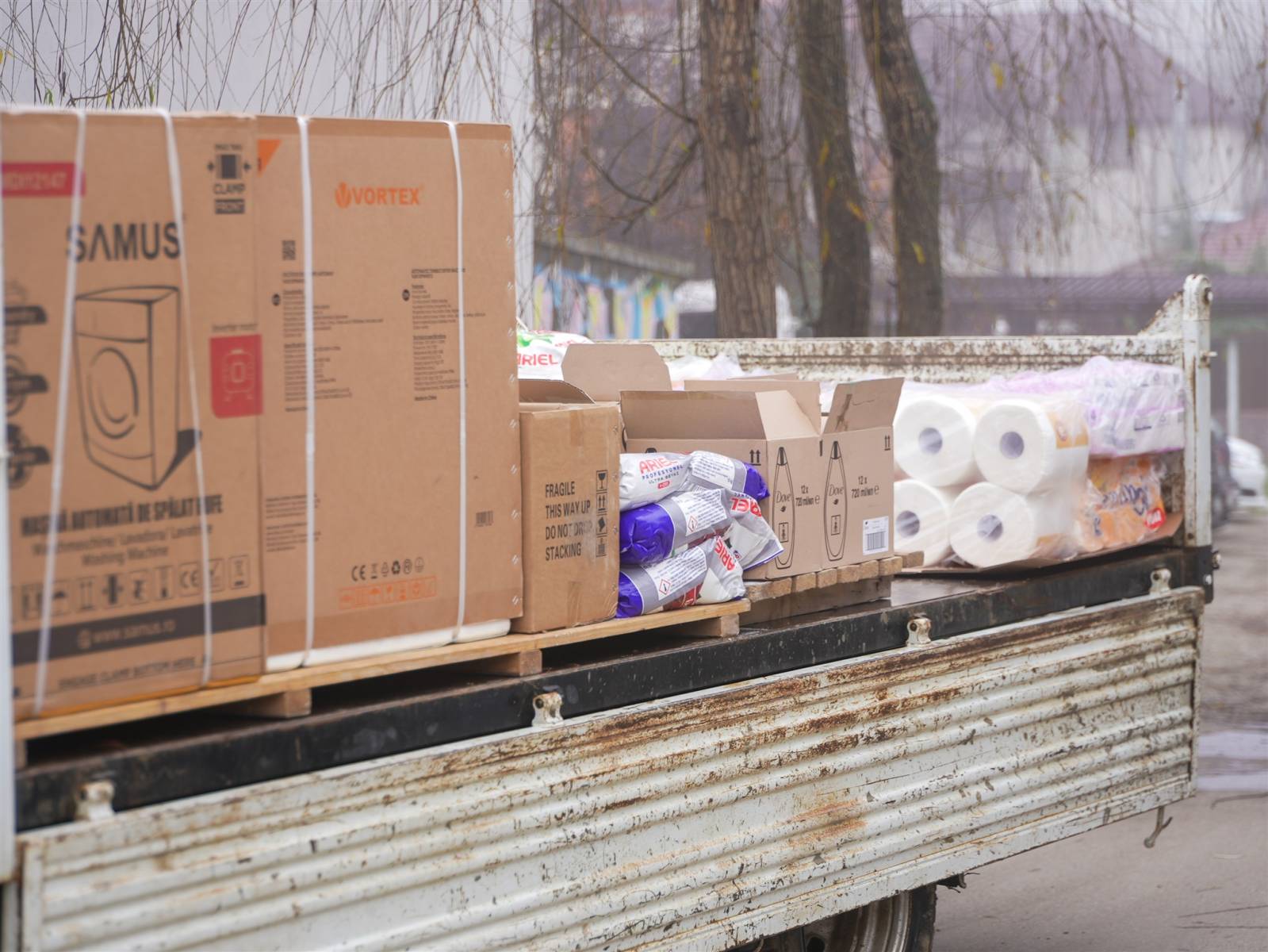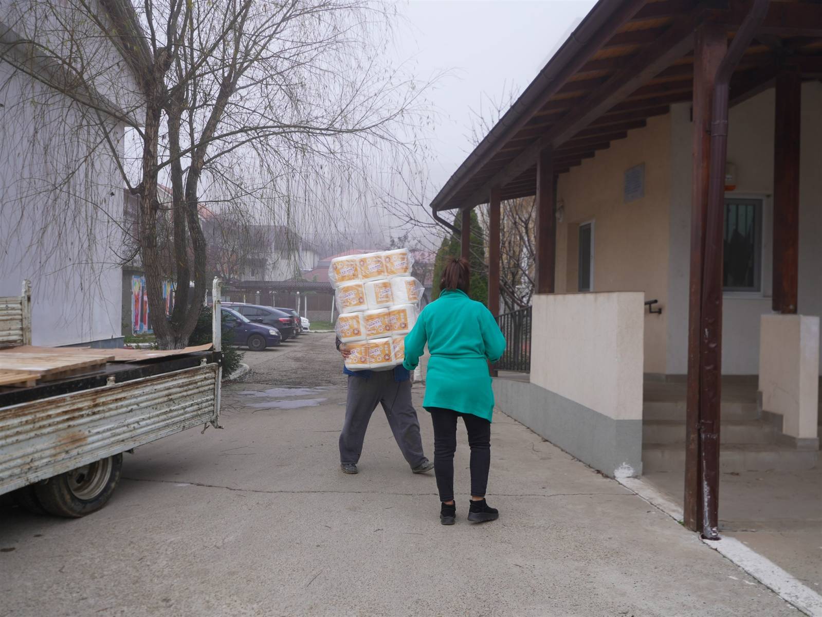 După ce au pregătit darurile la Cantina parohială, preotul paroh împreună cu voluntari din cadrul parohiei s-au deplasat la respectiva instituţie socială din Galaţi pentru a oferi pachetele cu produse de igienă, dar şi o maşină de spălat şi un uscător de rufe, două cuptoare electrice, detergenţi, clor şi balsam pentru rufe.
