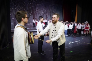 Portul popular românesc a fost evidenţiat prin costumele tradiţionale româneşti, purtate de elevii uniţi în cânt şi-n bucurie.