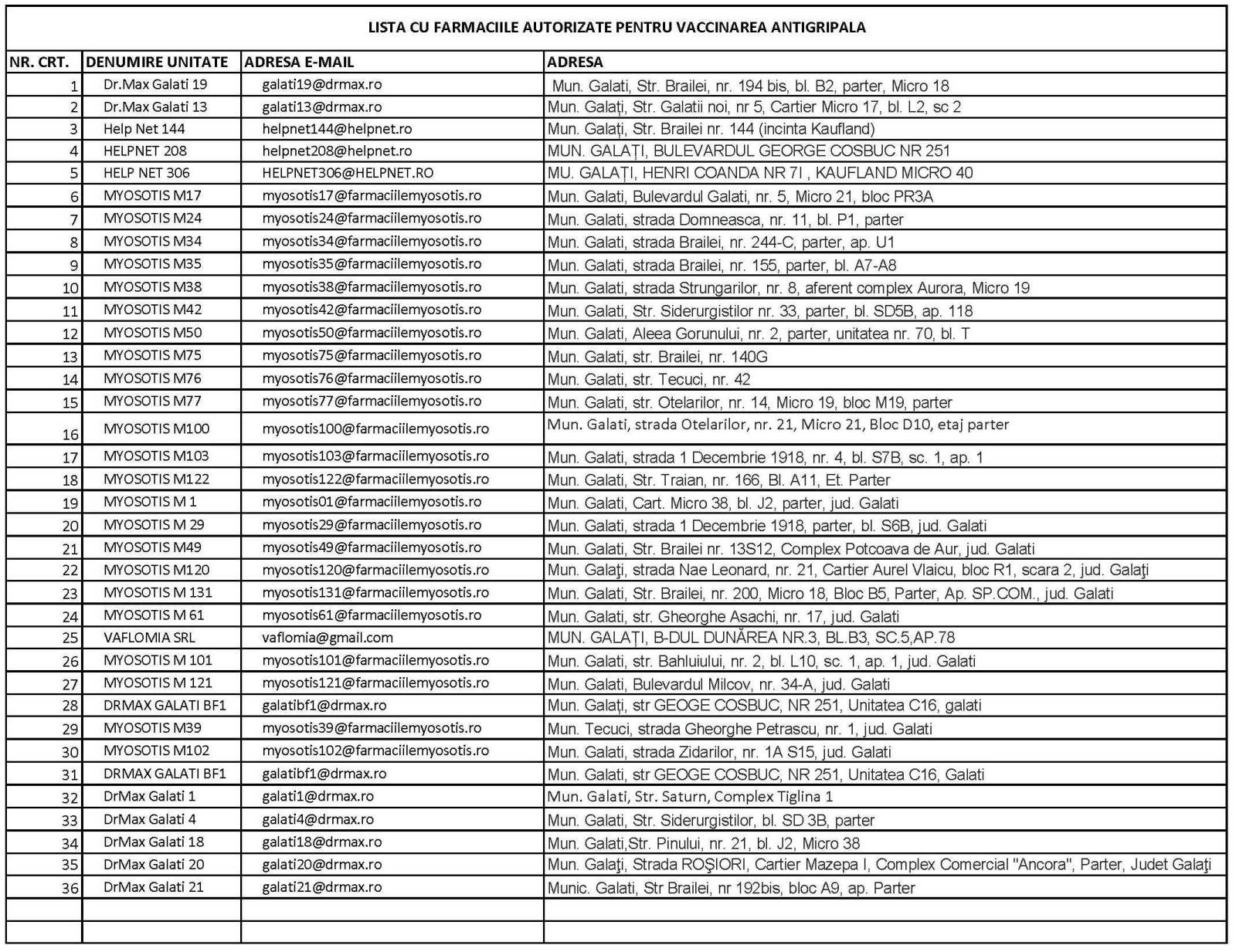 Lista farmaciilor din Galaţi autorizate pentru vaccinare este disponibilă în Galeria de imagini de mai jos!