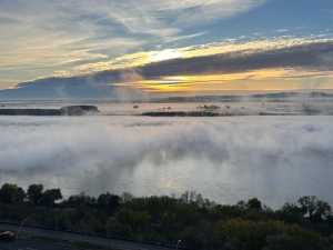 Spectacol pe Dunăre la Galaţi, unde fluviul părea că a dat în clocot la prima oră a dimineţii. Fenomenul este cauzat de evaporarea provocată de diferenţa mare de temperatură între aer şi apă. Azi dimineaţă, 13 noiembrie 2023, aerul avea 2 grade Celsius, iar apa Dunării 15 grade Celsius. Localnicii denumesc fenomenul popular "fierbe Dunărea". Acesta nu pune dificultăţi navigatorilor, deoarece ei oricum se orientează şi cu instrumentele de navigaţie. FOTO/VIDEO, mai jos! ↓