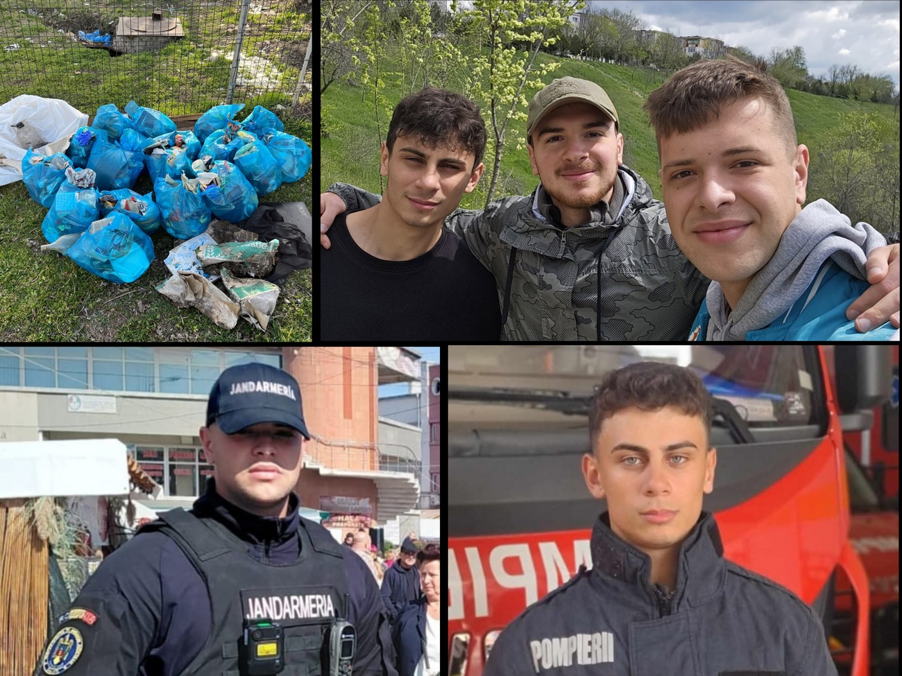 Doi dintre ei sunt cadre ale structurilor de intervenţie ale statului. Mihai, în vârstă de 21 de ani, este jandarm în cadrul Detaşamentului Mobil al Jandarmeria Galaţi, absolvent al Şcolii Militare de Subofiţeri de Jandarmi Fălticeni (promoţia 2023). Prietenul său, Raul, 22 de ani, este subofiţer pompier la ISU Bucureşti-Ilfov, absolvent al Şcolii de Subofiţeri de Pompieri şi Protecţie Civilă Boldeşti (promoţia 2025). Alături de ei s-a aflat şi Gabriel, în vârstă de 24 de ani, prieten din copilărie, dovadă că spiritul civic nu ţine de uniformă, ci de educaţie şi valori.