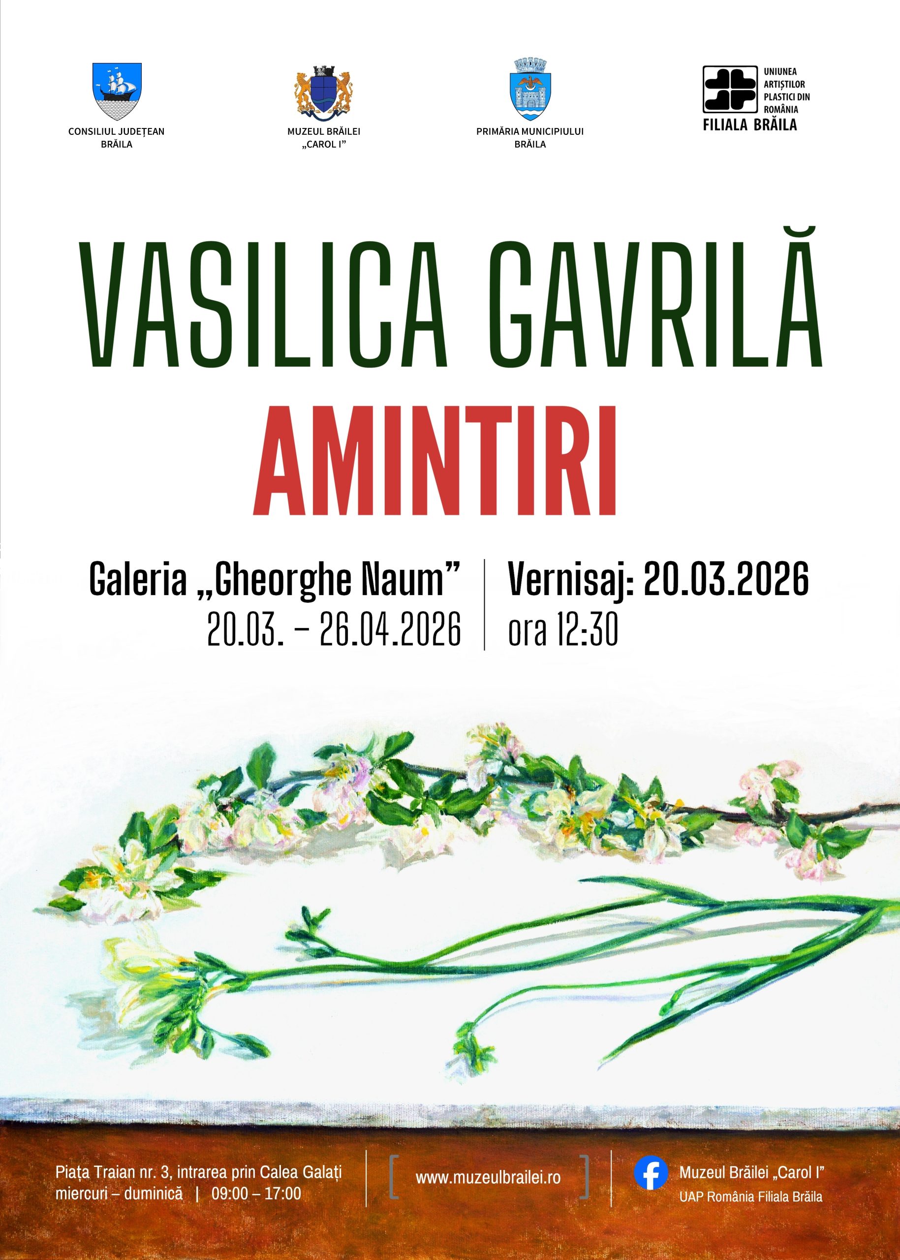 Publicul poate vizita expoziţia la Galeria „Gheorghe Naum” din Brăila, în perioada 20 martie – 26 aprilie 2026.