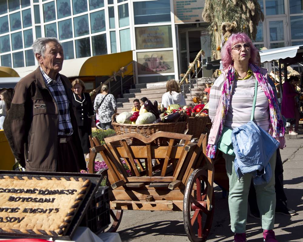 Deliciile au fost completate de standurile cu fructe şi legume de sezon, prezentate spectaculos, ca într-o paradă a roadelor pământului. De la dovleci coloraţi la ciorchini grei de struguri şi porumb aurit, totul a contribuit la un decor autentic de toamnă.