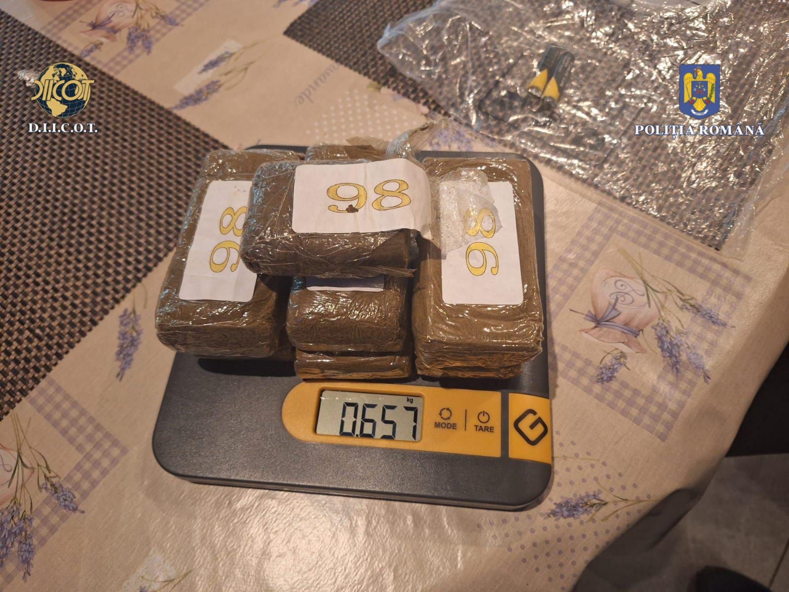 În urma percheziţiei efectuate, în cursul zilei de ieri, în municipiul Galaţi, au fost identificate şi ridicate 654,59 grame de rezină de canabis (drog de risc), o cantitate de drog de mare risc, cunoscut sub denumirea generică de cristal (3-CMC), 65 de cartuşe de diferite modele şi calibre, precum şi alte mijloace de probă.