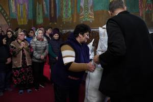 Înainte de a intra în posesia darurilor, beneficiarii au fost binecuvântaţi de preoţii lor în biserici şi s-au rugat cu toţii Milostivului Dumnezeu.