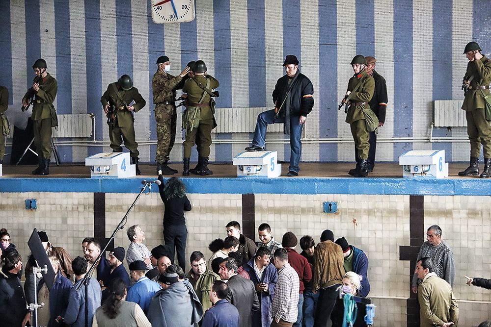 Albumul fotografic ↓ înfăţişeaza aspectele colocviului regizorului Tudor Giurgiu şi echipei sale cu spectatorii filmului, dar şi imagini de la turnarea filmului „Libertate”, partea cu cei reţinuţi în bazinul de înot, care s-a realizat la Liceul sportiv din Brăila. La filmări, Tudor Giurgiu, îmbrăcat într-o jachetă albastră, apare între actori, întotdeauna calm şi amabil.