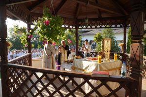 Cu acest prilej, Înaltpreasfinţitul Părinte Casian, Arhiepiscopul Dunării de Jos a oficiat Sfânta Liturghie la Altarul de vară al mănăstirii, înconjurat de un sobor de preoţi şi diaconi, în prezenţa monahiilor mănăstirii, a pelerinilor şi a credincioşilor din parohiile învecinate. Acestora li s-au adăugat şi români care lucrează peste hotare, veniţi acasă în perioada de concediu pentru a fi alături de cei dragi.