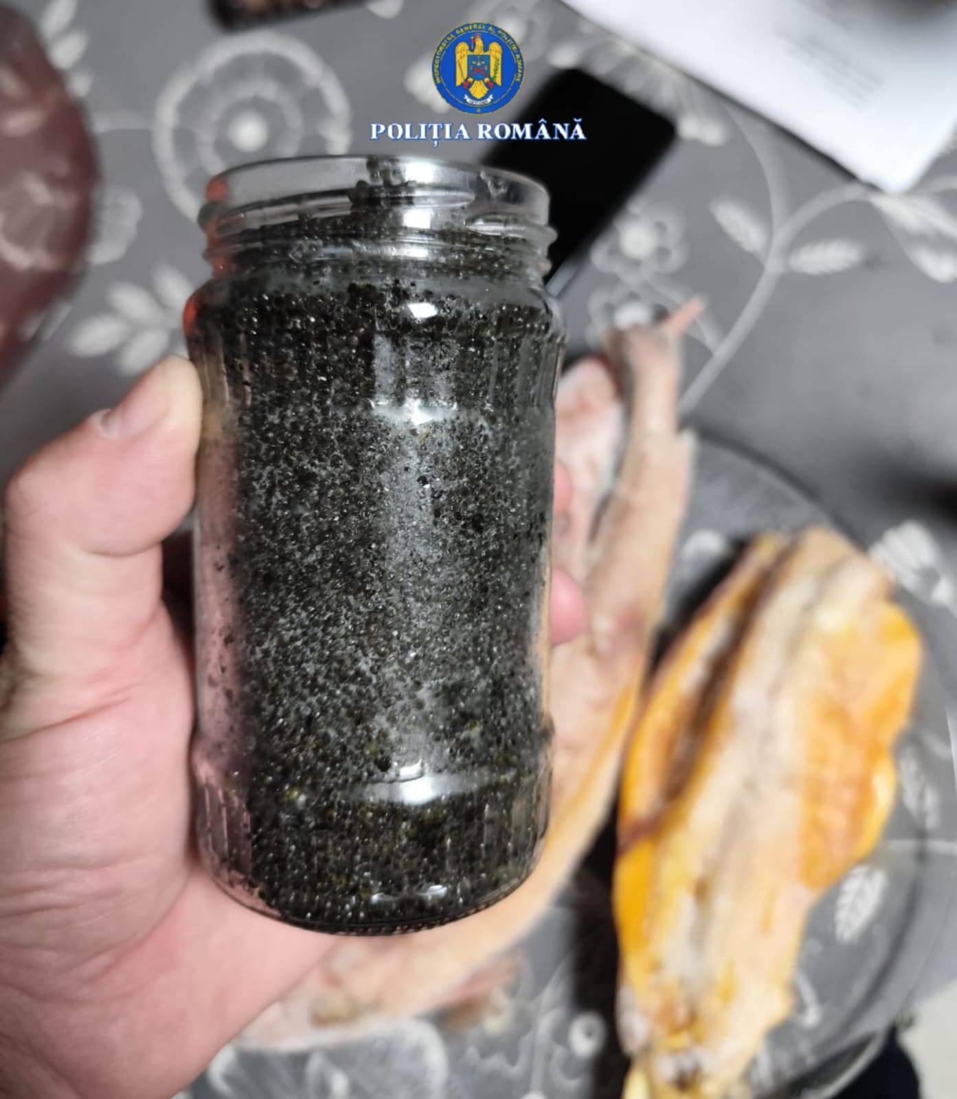 În urma flagrantului, au fost puse în executare trei mandate de percheziţie domiciliară. Cu această ocazie, poliţiştii au descoperit şi indisponibilizat, în vederea continuării cercetărilor, sumele de 6.800 de lei şi 50 de euro, două ambarcaţiuni cu motor, 500 de grame de icre negre şi patru bucăţi de sturion congelat, subspecia cegă. De asemenea, au fost ridicate 14 plase de pescuit de tip setcă, cu o lungime totală de aproximativ 1.000 de metri, precum şi trei site pentru separarea icrelor negre, care prezentau urme de ovule.