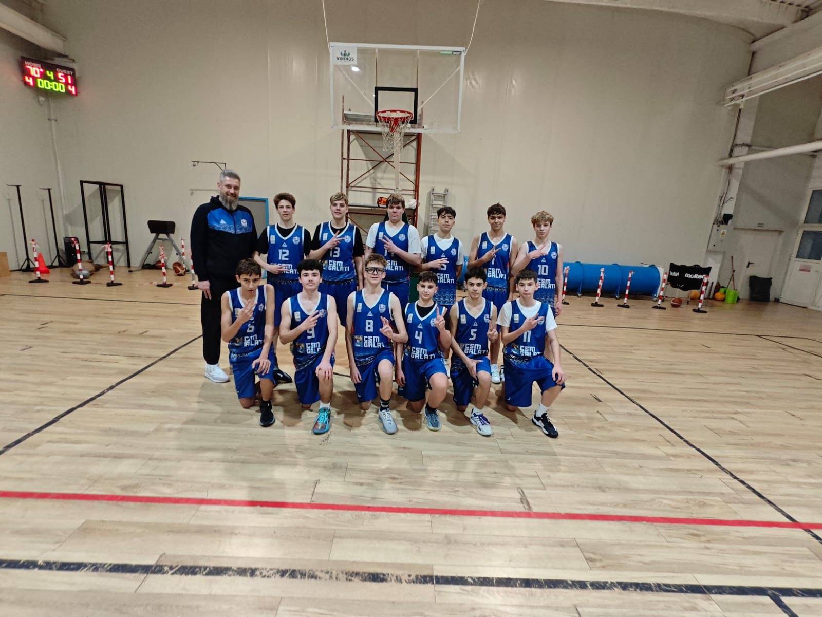 Băieţii de la CSM Galaţi, antrenor Bogdan Bălănică, au avut prestaţii solide la Iaşi concretizate cu două victorii importante: 61-50 cu Vikings Iaşi şi 70-51 cu ACS Educaţie şi Performanţă Bucureşti. Lotul de jucători: Rareş Nistor, Rareş Turcu, David Iacob, David Chebac, Matias Oană, Cosmin Chelu, Andrei Mocanu, Ştefan Severin, Florin Neagu, Alexandru Onea, Luca Martin şi Ştefan Coman.