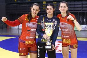 Sala Polivalentă din Sf.Gheorghe a găzduit weekendul trecut Trofeul Carpaţi la handbal feminin rezervat junioarelor. La start s-au aliniat patru echipe naţionale: România, Ungaria, Polonia şi Spania. Naţionala tricoloră, pentru care au jucat şi olimpicele Ana Maria Gavrilă, Andreea Pisiceanu şi Daria Mihăilă, jucătoare cu dublă legitimare ACS Lucian Bute Galaţi - HC Dunărea Brăila, a ocupat locul 3 în clasamentul final după ce a înregistrat rezultatele: 20-25 (10-14) cu Spania, 24-19 (10-7) cu Polonia şi 24-27 (13-13) cu Ungaria. Peste o lună, junioarele tricolore se vor reuni din nou, România se pregăteşte pentru participarea la Campionatul Mondial programat vara aceasta în China.