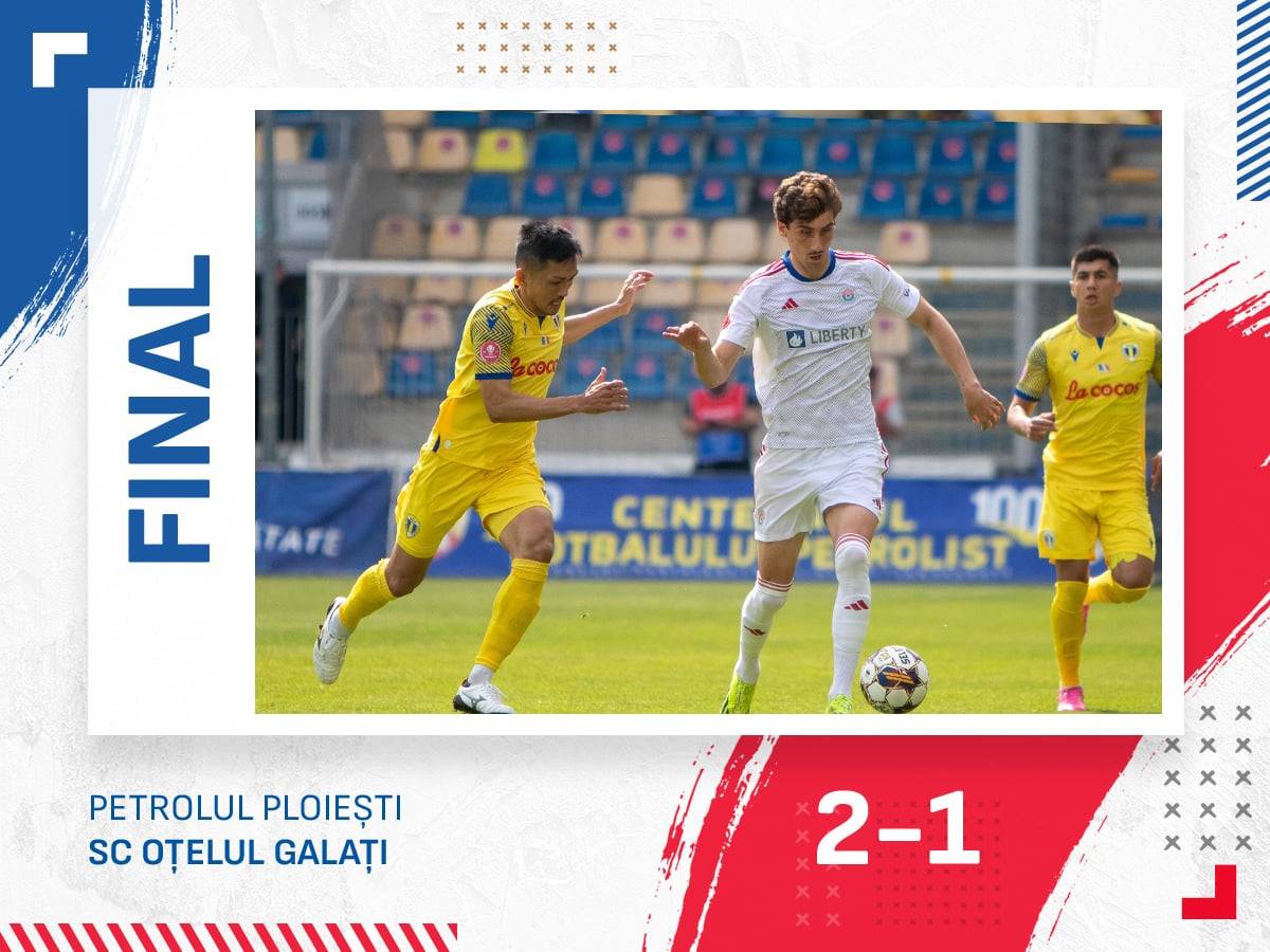Oţelul a jucat la Ploieşti în prima zi de Paşti cu Petrolul într-o partidă care a contat pentru cea de-a 8-a etapă a Superligii. Ritmul a fost bun de la început, echipa gălăţeană a avut prima ocazie în min.8, Maciel a centrat, dar execuţia lui Rusevic a fost deviată. Petrolul a deschis scorul în faza imediat următoare, Zhelev a greşit, Musi a scăpat, a pătruns în careu şi după duelul cu Pap a primit penalti, care a fost transformat impecabil de Grozav. Oţelarii au avut câteva momente de uluială după primirea golulului, ploieştenii au încecat să profite, dar nu a fost periculoasă. Formaţia lui Dorinel Munteanu a revenit la pressingul avansat în jumătatea adversă cu care ne-am obişnuit, dar tot gazdele au trecut pe lângă gol în min.31 prin Grozav. Peste doar şapte minute, Rusevic a introdus mingea în plasă, dar a fost semnalizat în offside. Roş-alb-albaştrii au revenit şi au restabilit egalitatea în min.40 după o fază şnur: Zivulic i-a pasat în adâncime lui Zhelev, care şi-a răscumpărat greşeala, a insistat, a centrat dintr-o poziţie incomodă pentru Maciel care a marcat. Gazdele puteau să intre la pauză în avantaj, dar Pap l-a blocat în extremis pe căpitanul Petrolului. Băieţii lui Dorinel Munteanu au ieşit mai hotărâţi de la vestiare şi au avut iniţiativa. În min.61 după un corner, Zivulic a trimis cu o lovitură de cap alături. Ultimul sfert de oră a fost complicat, echipa gălăţeană a rămas în 10 după ce Pop s-a accidentat şi nu a mai putut continua, gazdele au profitat imediat şi au trecut din nou în avantaj în min.81. Oţelul a revenit în atac şi a irosit o şansă importantă de egalare în min.90 când centrarea lui Adăscăliţei nu a fost reluată aşa cum ne doream de Cisotti. Scor final: Petrolul Ploieşti - SC Oţelul 2-1 (1-1).