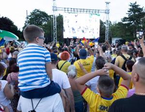 Explozie de bucurie miercuri seara la Galaţi după calificarea României în optimi la Euro 2024. Naţionala României s-a calificat miercuri seara în optimile de finală ale Campionatului European de fotbal - EURO 2024, găzduit de Germania, din postura de câştigătoare a Grupei E, după 1-1 (1-1) cu Slovacia, pe Frankfurt Arena. Gălăţenii s-au adunat în număr mare în faţa ecranului amplasat de municipalitate la Păpădie, în faţa Casei de Cultură, unde au urmărit meciul LIVE alături de aventurierii ZU, Morar, Buzdu şi Emma, gălăţeanca noastră, care au poposit la Galaţi cu RadioAventura 2024. Atmosfera a fost copleşitoare şi gălăţenii au arătat încă o dată că sunt suporteri adevăraţi. Naţionala noastră va juca în optimi de finală pe 2 iulie pe Alianz Arena din Munchen cu Olanda. Hai, România! Imagini de la Păpădie, în Albumul foto de mai jos! *credit imagini: DO