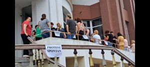 ! Precizăm că activitatea nu este blocată şi vom reveni imediat ce protestul spontan izbucnit în această dimineaţă (foto jos ↓) se va opri!