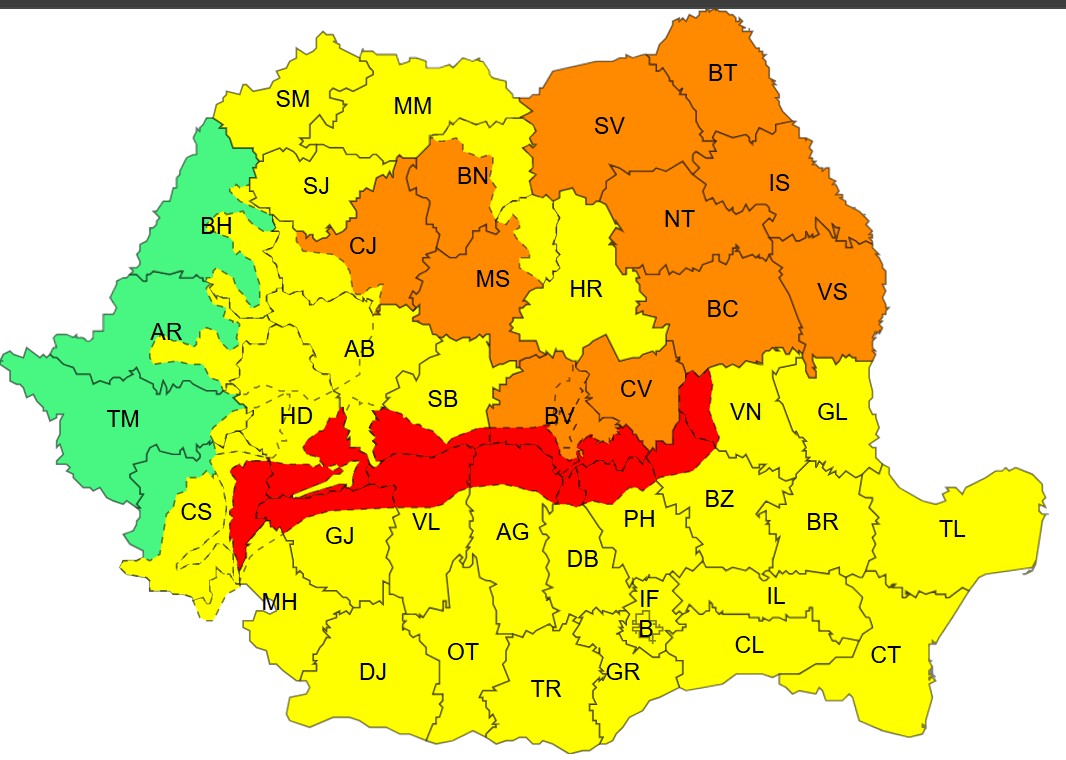 Meteorologii au actualizat prognoza şi anunţă că vremea se va înrăutăţi. Codul portocaliu de vânt şi viscol se transformă în cod roşu, valabil în special în zonele de munte. Avertizarea cod galben este înlocuită de cod portocaliu anunţând că vântul poate ajunge la peste 120 de km/h.