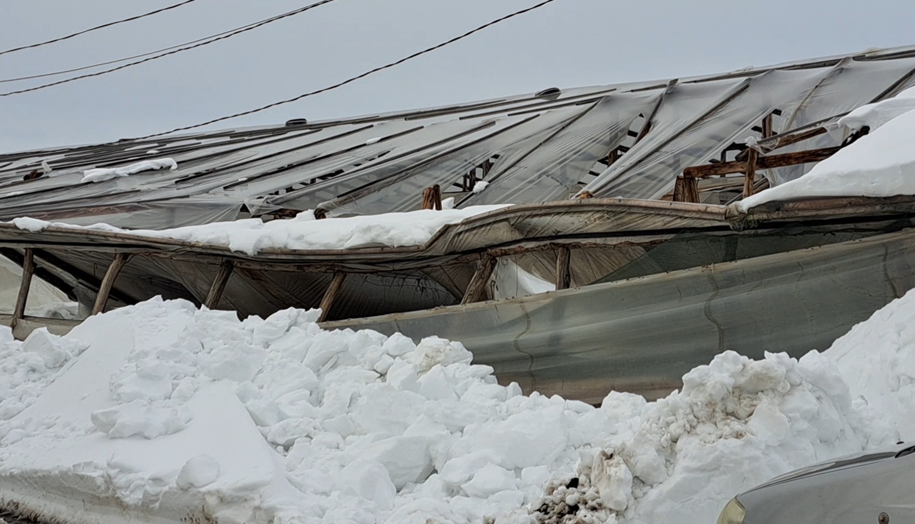 Zăpada în cantitate mare și viscolul au distrus solarii pe aproximativ 200 de hectare în comuna Matca, una dintre cele mai mari bazine legumicole din țară (foto).